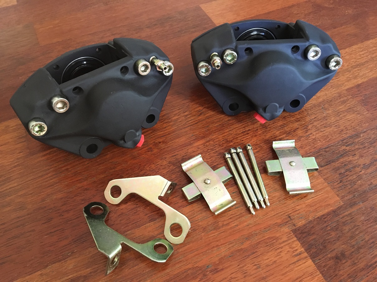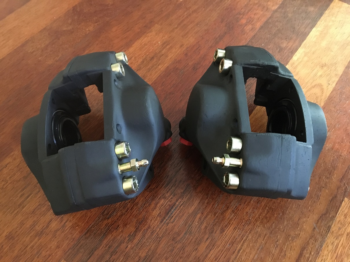 Eric, Who rebuilt these calipers ? Mike Unfortunately, I do not have that information as these came as part of the numerous components from an abandonned project I acquired a few months ago. I already have my set for my project and will not need this second set. That being said, they came with plated bleeders (seen on the picture) and red caps at the oil inlet which is not typical of a PMB restored caliper. These were probably not restored by PMB. Another hint is the extra brackets that I think would be for an actual Alfa use. I don't believe we would use them on our 911 3" struts. They look very nice overall! (IMG:style_emoticons/default/sunglasses.gif) |